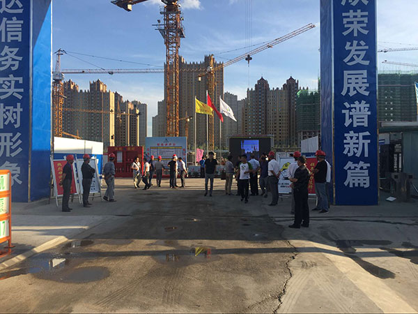 參觀過(guò)程中,第七工程公司經(jīng)理陳貴榮同志就施工現(xiàn)場(chǎng)安全標(biāo)準(zhǔn)化、定型化施工工藝、安全體驗(yàn)區(qū)及綠色節(jié)能施工等向各位來(lái)賓一一介紹,本項(xiàng)目良好的場(chǎng)容場(chǎng)貌,綠色節(jié)能環(huán)保設(shè)施,定型化防護(hù)設(shè)備等都得到了來(lái)賓人員的一致好評(píng)。