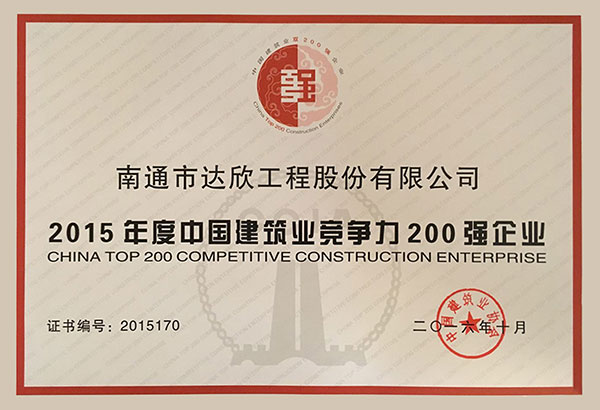 新的《中國(guó)建筑業(yè)雙200強(qiáng)企業(yè)評(píng)價(jià)辦法》主要從經(jīng)營(yíng)規(guī)模、資產(chǎn)規(guī)模、盈利能力、上繳稅金、科技、質(zhì)量、精神文明等五個(gè)方面進(jìn)行綜合評(píng)價(jià),經(jīng)企業(yè)自愿申報(bào)、各地區(qū)和有關(guān)行業(yè)協(xié)會(huì)推薦、專(zhuān)家評(píng)審。這是公司連續(xù)5年榜上有名,也是公司首度由成長(zhǎng)性百?gòu)?qiáng)跨入中國(guó)建筑業(yè)競(jìng)爭(zhēng)力200強(qiáng)企業(yè)序列,標(biāo)志著公司綜合競(jìng)爭(zhēng)力水平再上新臺(tái)階。