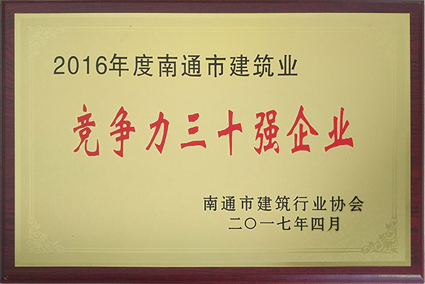公司榮獲2016年度南通市建筑業(yè)競(jìng)爭(zhēng)力30強(qiáng)