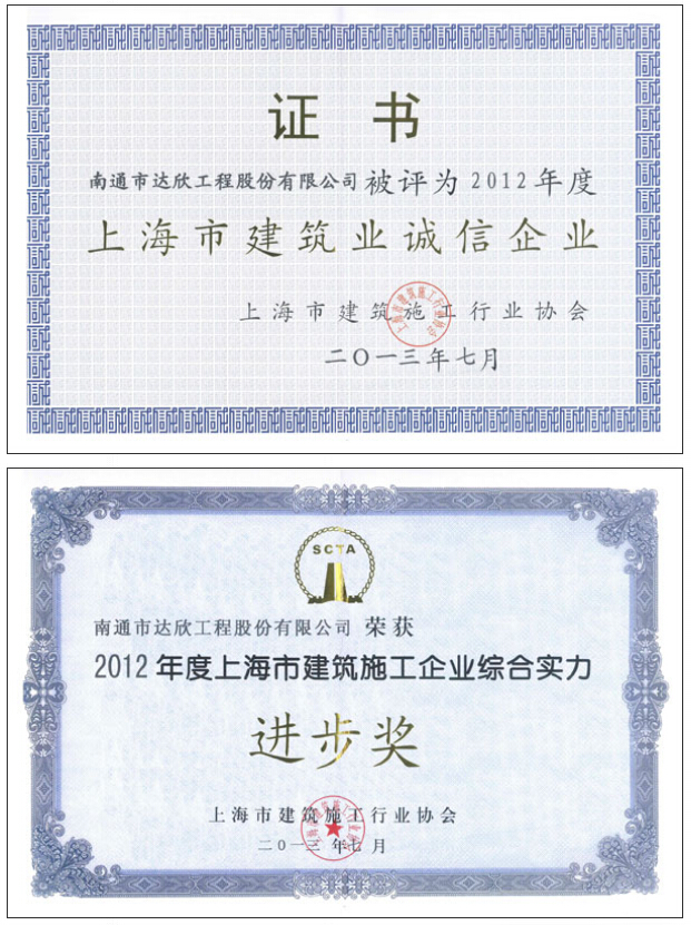 第一工程公司喜獲上海市建筑業(yè)誠信企業(yè)、上海市綜合實力進(jìn)步獎