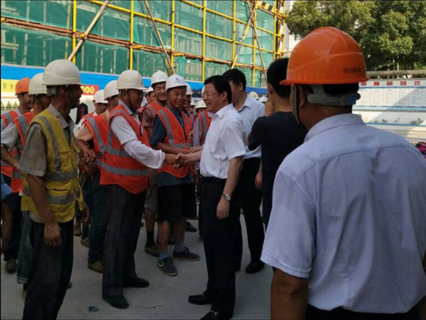 縣領(lǐng)導(dǎo)高溫慰問海安人民醫(yī)院項(xiàng)目的一線工人
