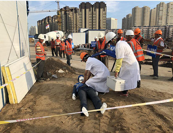 齊市安全應(yīng)急救援預(yù)案演練在第七工程公司飛鶴?御景園項(xiàng)目召開