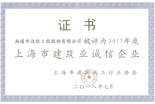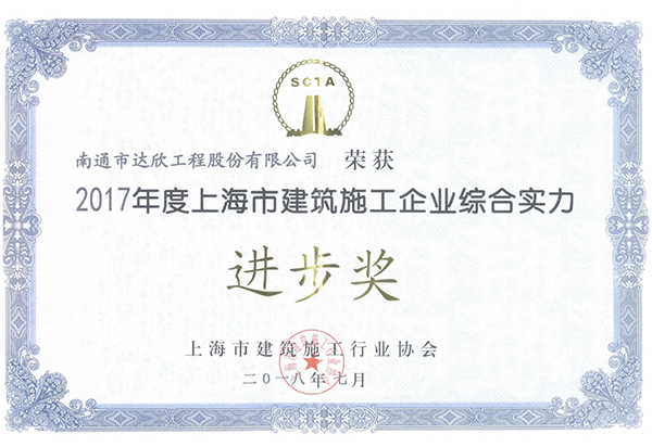 此外,公司還被評(píng)為2017年度上海市建筑施工企業(yè)綜合實(shí)力進(jìn)步獎(jiǎng)稱(chēng)號(hào)。