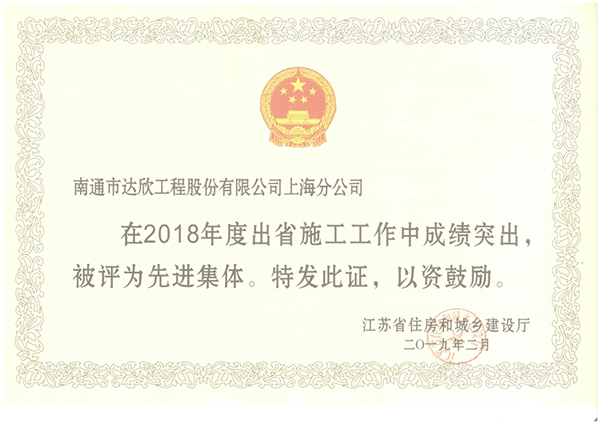 第一工程公司榮獲江蘇出省施工先進(jìn)集體