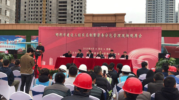 4月19日上午,邯鄲市建設(shè)局、公安局聯(lián)合在邯鄲高鐵站東側(cè)榮科佳苑項(xiàng)目舉行“邯鄲市建設(shè)工程實(shí)名制暨勞務(wù)分包管理現(xiàn)場觀會”。市公安局副局長梁海民、李強(qiáng)、市建管辦副主任連書民、市建管辦分包處處長郭長印、全市各區(qū)縣建設(shè)局主管副局長以及各建設(shè)、施工監(jiān)理單位負(fù)責(zé)人、勞務(wù)企業(yè)負(fù)責(zé)人等500多人參加會議。