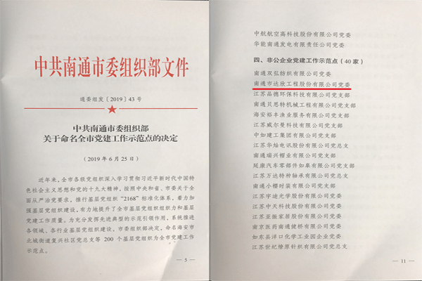 近日,南通市達(dá)欣工程股份有限公司黨委被中共南通市組織部授予非公企業(yè)黨建工作示范點(diǎn)稱號(hào)。