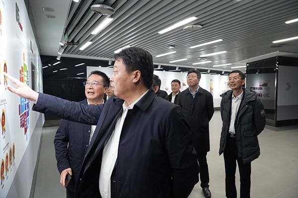 于立忠等領(lǐng)導(dǎo)參觀了企業(yè)展示中心、馬和軍勞模創(chuàng)新工作室黨支部,觀看了達(dá)欣集團(tuán)“紅旗鐵軍”專題片,了解了集團(tuán)在黨員管理工作方面“實施項目化管理,樹達(dá)欣黨建鐵軍品牌”的特色做法。在企業(yè)展示中心,于立忠系統(tǒng)了解了企業(yè)40多年來的發(fā)展歷程和集團(tuán)黨委開展的四項融合、四微黨建、三項目標(biāo)的“四四三”黨建工作法,以及具有達(dá)欣特色的“工地黨旗美如畫”黨建工作。