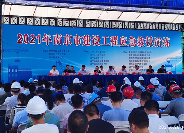 6月28日,由南京市城鄉(xiāng)建設(shè)委員會(huì)、南京市應(yīng)急管理局、江寧區(qū)人民政府主辦的“南京市建設(shè)工程應(yīng)急救援演練觀摩會(huì)”在第二工程公司蘇沃科技園項(xiàng)目部召開。南京市建委副書記朱家祥、南京市安委辦專職副主任韓成頌;江寧區(qū)人民政府副區(qū)長孫兆金、江寧區(qū)城鄉(xiāng)建設(shè)局局長易強(qiáng)等領(lǐng)導(dǎo),全市施工企業(yè)、監(jiān)理單位、建設(shè)單位負(fù)責(zé)人及相關(guān)人員等近500余人參加本次活動(dòng)。集團(tuán)常務(wù)副總經(jīng)理王邦國主席臺(tái)就坐。
