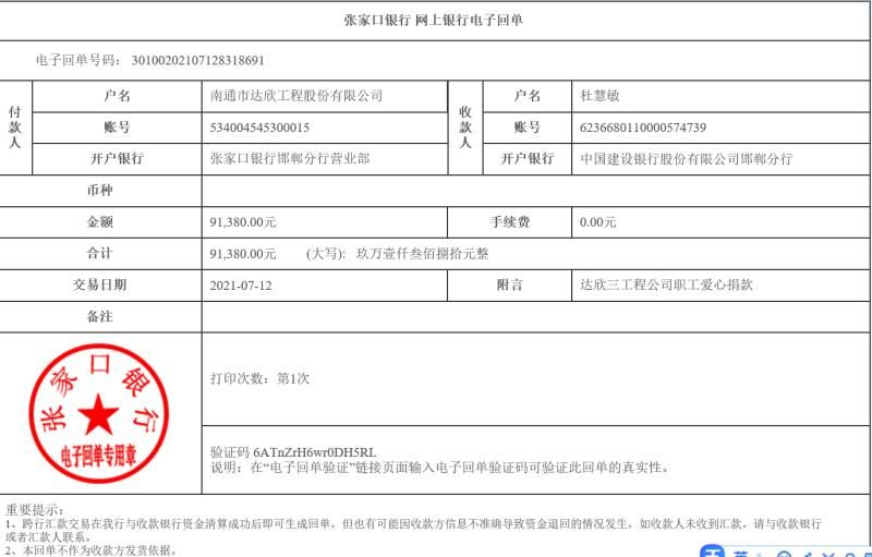 同事們在得知情況后,紛紛伸出援手,獻(xiàn)出一份愛和情誼在大家的共同努力下,共籌到善款91380元,并于第一時間匯到杜慧敏賬戶里。希望能盡快走出病痛的折磨,早日康復(fù)!