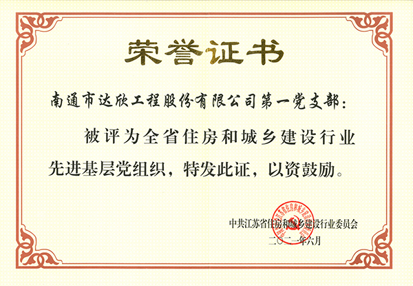 第一黨支部榮獲江蘇省住建行業(yè)先進(jìn)基層黨組織稱號