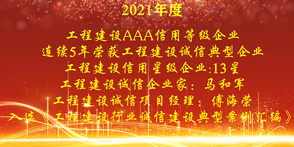 12月1日,中國施工企業(yè)管理協(xié)會(huì)在北京召開“2021年度工程建設(shè)誠信企業(yè)推介大會(huì)”。會(huì)上表彰了2021年度工程建設(shè)AAA信用等級企業(yè)、工程建設(shè)誠信典型企業(yè)、工程建設(shè)信用星級企業(yè),工程建設(shè)誠信企業(yè)家、工程建設(shè)誠信項(xiàng)目經(jīng)理。達(dá)欣集團(tuán)憑借良好的社會(huì)信譽(yù)和在履行社會(huì)責(zé)任方面的突出表現(xiàn),獲得多項(xiàng)誠信殊榮。