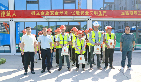 8月11日上午,海安市總工會黨組成員、副主席劉學亮一行來到集團第九工程公司承建的海安高級中學公寓樓項目部,開展“高溫送清涼,防控不松懈”夏季慰問活動。集團常務副總經(jīng)理王邦國、第九工程公司經(jīng)理陸良兵等陪同。