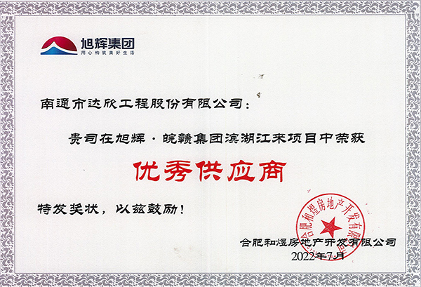 近日,旭輝·皖贛集團對2022年度優(yōu)質(zhì)供應(yīng)商進行表彰,集團第一工程公司在旭輝·皖贛集團濱湖江來項目中榮獲優(yōu)秀供應(yīng)商稱號。