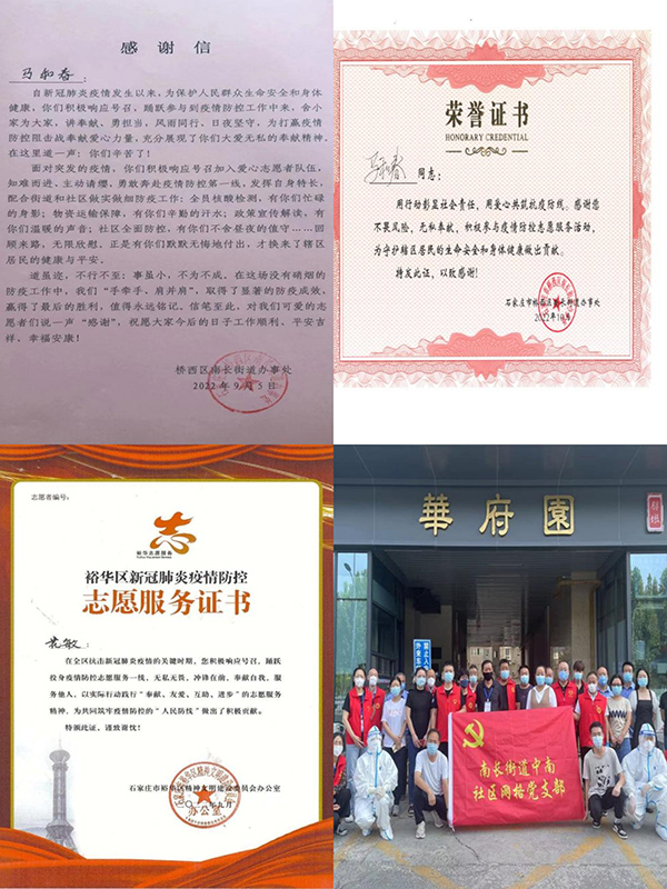 近日,第四工程公司陸續(xù)收到來自石家莊橋區(qū)西區(qū)南長街道辦事處、裕華區(qū)精神文明建設(shè)委員會(huì)對馬和春、花敏等同志的感謝信,對他們在石家莊市疫情期間,主動(dòng)請纓加入志愿者隊(duì)伍,不懼風(fēng)險(xiǎn)、知難而進(jìn),為社區(qū)物資配送、核酸檢測、信息統(tǒng)計(jì)、環(huán)境消殺、防控措施宣傳等方面所做的貢獻(xiàn)和展現(xiàn)出的舍小家為大家的無私、擔(dān)當(dāng)、奉獻(xiàn)精神表示感謝。