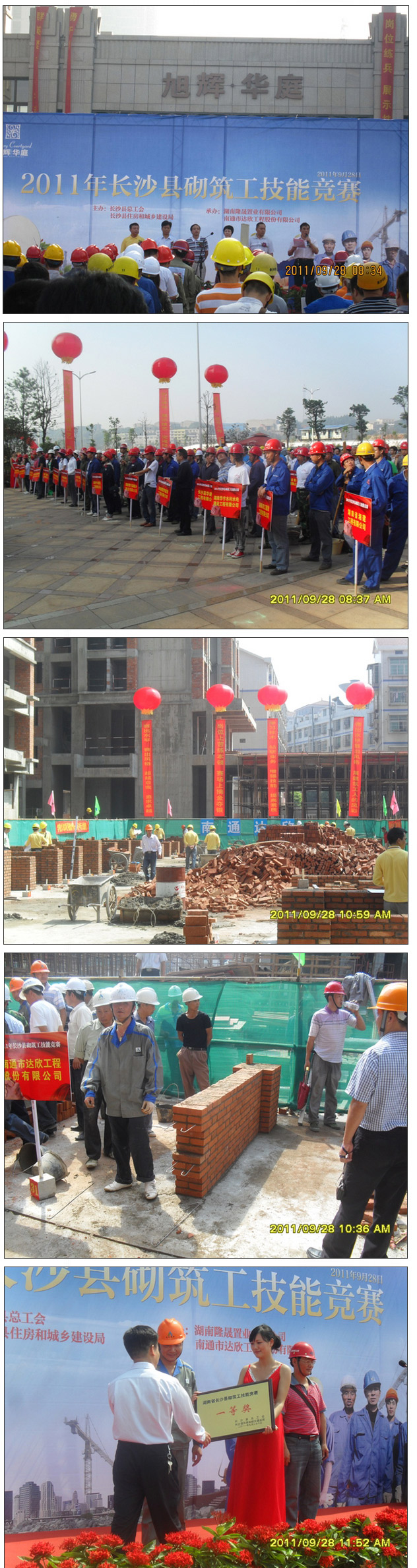 9月28日上午,秋高氣爽、丹桂飄香,由長沙縣總工會、長沙縣住房和城鄉(xiāng)建設(shè)局主辦,湖南隆晟置業(yè)有限公司和我公司承辦的 2011年長沙縣砌筑工技能競賽活動圓滿落幕。第一工程公司長沙旭輝?華庭項目部選手方子星一舉奪冠,榮獲參賽單位集體一等獎。