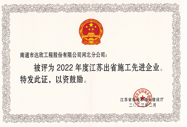 公司在冀連續(xù)十年榮獲“江蘇省出省施工先進(jìn)企業(yè)”