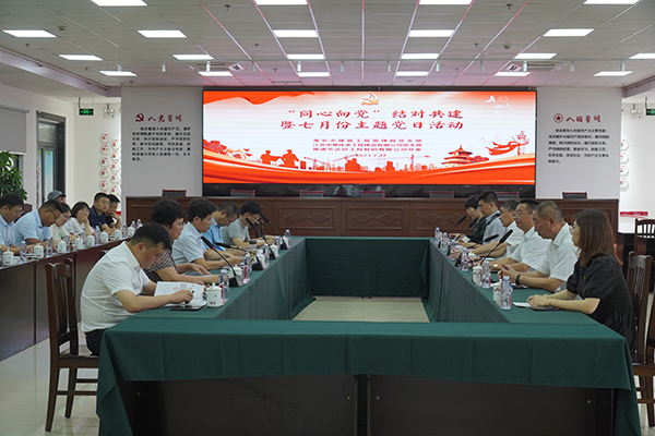 7月27日,海安市建筑行業(yè)黨委書記、建筑工程管理局局長賈伯根,副局長儲祥文、徐培鴻,江蘇中慧傳承工程建設有限公司總經理、黨支部副書記蔡海峰一行蒞臨達欣集團,聯(lián)合達欣黨委開展“同心向黨”支部共建暨七月主題黨日活動,集團在海領導馬和軍、劉厚純、杭小建、溫鶴華等參加活動。
