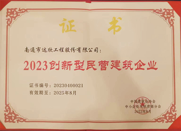 達欣集團榮獲“2023創(chuàng)新型民營建筑企業(yè)”