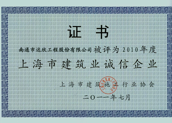 “上海市建筑業(yè)誠信企業(yè)”評選活動由上海市建筑施工行業(yè)協(xié)會組織,每年舉辦一次,宗旨在于不斷推進建筑施工企業(yè)的行業(yè)自律和誠信建設(shè),提高建筑施工企業(yè)的綜合實力,促進行業(yè)健康發(fā)展。第一工程公司在誠信體系建設(shè)中,充分發(fā)揮表率作用,勇當(dāng)誠信龍頭。通過管理創(chuàng)新,將企業(yè)誠信建設(shè)納入公司經(jīng)營管理的全過程。制定誠信體系、誠信教育管理、誠信承諾管理、誠信評價管理等一系列誠信管理制度,推動誠信建設(shè)工作,創(chuàng)出了較好的經(jīng)濟效益和社會效益,同時,也樹立了達(dá)欣公司誠實守信的良好社會形象。