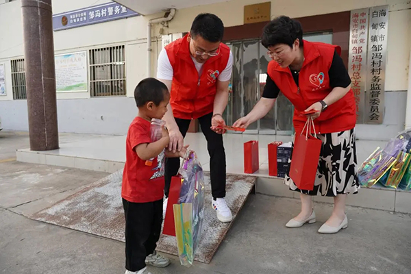 5月31日,在“六·一”國際兒童節(jié)到來之際,達欣集團·魯班傳人志愿服務總隊來到白甸鎮(zhèn)鄒馮村開展“欣愛童”關愛行動,集團總經(jīng)理王邦國,黨委副書記陳春紅,團委書記錢美澄參加。