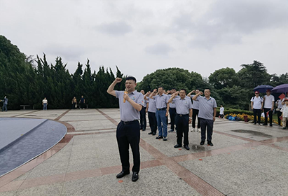 在抗日英雄群雕廣場(chǎng),全體黨員懷著對(duì)革命烈士崇高的敬意,向革命英雄敬獻(xiàn)花籃,鞠躬悼念中銘記歷史。支部書記倪志榮帶領(lǐng)全體黨員重溫入黨誓詞,面對(duì)鮮紅的黨旗和莊嚴(yán)的誓詞,共同高舉右拳,莊嚴(yán)宣誓。
