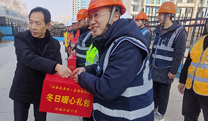 1月13日,南通市總工會(huì)黨組成員、經(jīng)審會(huì)主任周正秋,南通市總工會(huì)權(quán)益保障部部長(zhǎng)趙周恒一行,來(lái)到達(dá)欣集團(tuán)南通R23005地塊項(xiàng)目建設(shè)現(xiàn)場(chǎng),開(kāi)展“工會(huì)在身邊 真情暖江海”2025年春節(jié)送溫暖活動(dòng),為奮戰(zhàn)在一線(xiàn)的工作人員送上冬日暖心禮包和新春的祝福與慰問(wèn)。