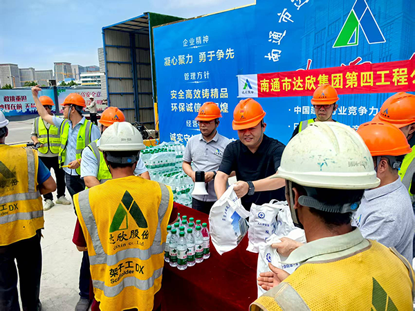 正值盛夏,烈日炎炎,施工現(xiàn)場的工友們不懼高溫,堅(jiān)守崗位,全力推進(jìn)項(xiàng)目建設(shè)進(jìn)度。工程公司總經(jīng)理傅海榮詳細(xì)詢問工友們的工作和生活情況,對大家在高溫下辛勤付出表示衷心感謝。隨后,傅海榮親自將精心準(zhǔn)備的防暑降溫禮品分發(fā)到每一位工友手中,為工友們在炎炎夏日送去一份貼心的關(guān)懷。