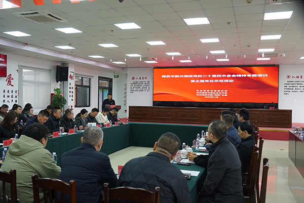11月27日上午,海安市新興領(lǐng)域黨的二十屆四中全會精神專題培訓(xùn)暨主題黨日示范活動在達(dá)欣集團(tuán)舉行。