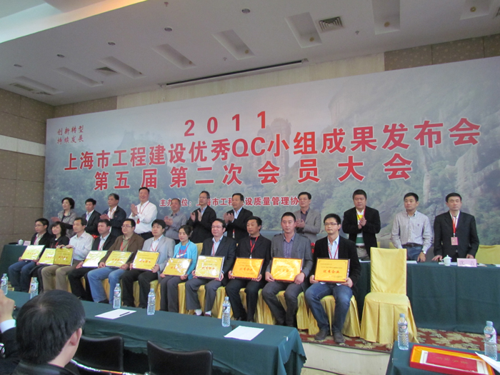 4月17日上海市工程建設(shè)質(zhì)量管理協(xié)會(huì)召開(kāi)2011年建設(shè)工程優(yōu)秀QC小組活動(dòng)成果發(fā)布會(huì)暨第五屆第二次會(huì)員大會(huì)。第一工程公司選送的 “攻克3m厚大體積砼底板裂縫”、“提高施工現(xiàn)場(chǎng)安全達(dá)標(biāo)優(yōu)良率”、“推行‘四節(jié)一環(huán)?!行Ы档凸こ坛杀尽薄ⅰ疤岣呓ㄖ粔こ痰氖┕べ|(zhì)量”、“有效控制填充墻內(nèi)混凝土構(gòu)造柱裂縫”、“有效控制斜屋面混凝土施工質(zhì)量”、“提高YTONG砂加氣砼砌塊砌筑合格率”、“有效提高模板工程施工質(zhì)量”、“降低明珠城三期工程鋼筋損耗”等九項(xiàng)QC成果均參加本次活動(dòng)的發(fā)布與交流。這次江蘇省在滬企業(yè)參加QC成果發(fā)布、交流共83篇,我公司就占據(jù)其中的14%,得到了駐滬辦領(lǐng)導(dǎo)的充分肯定。工程公司也被上海市工程建設(shè)質(zhì)量管理協(xié)會(huì)評(píng)為2011年上海市建設(shè)質(zhì)量管理小組活動(dòng)優(yōu)秀企業(yè)。