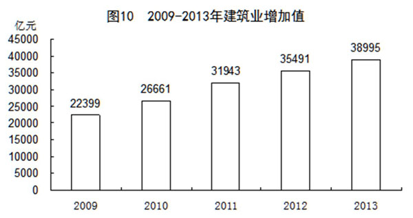 2013年全國建筑業(yè)增加值38995億元,比上年增長9.5%。全國具有資質(zhì)等級(jí)的總承包和專業(yè)承包建筑業(yè)企業(yè)實(shí)現(xiàn)利潤5575億元,增長16.7%,其中國有及國有控股企業(yè)1363億元,增長20.1%。