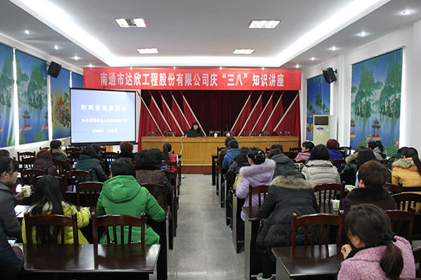 為提升女職工對婦女健康知識的認(rèn)識,增長健康保健常識,公司工會于3月7日下午邀請了海安縣人民醫(yī)院婦產(chǎn)科專家王秀美主任醫(yī)師,來公司四樓會議室對婦科日常知識進(jìn)行了專題講座。參加聆聽知識講座有公司總部全體女員工、工程公司管理崗位的女職工以及公司領(lǐng)導(dǎo)家屬代表等。