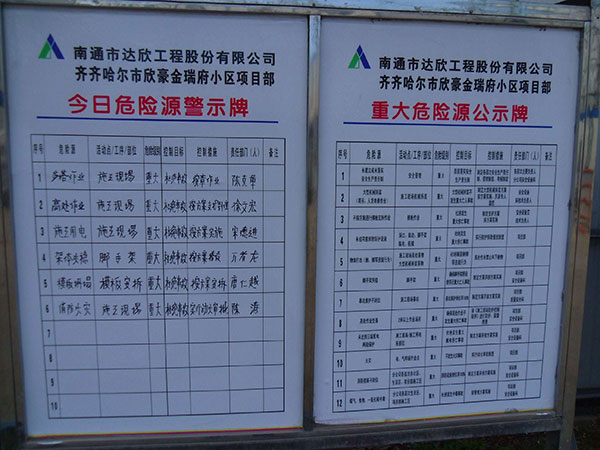 加強(qiáng)宣傳,項(xiàng)目部堅(jiān)持每日對(duì)職工進(jìn)行班組教育和日常班前教育,讓職工每日班前都能明確當(dāng)日的工作任務(wù)、操作規(guī)程和工作環(huán)境,提高個(gè)人的安全防范意識(shí),確保安全生產(chǎn);在每棟樓懸掛“安全生產(chǎn)月”活動(dòng)的宣傳標(biāo)語(yǔ)。加強(qiáng)警示,在工地大門(mén)口設(shè)置了重大危險(xiǎn)源公示牌,在每棟樓的入口處公示當(dāng)日本樓棟號(hào)的危險(xiǎn)源,時(shí)刻提醒職工注意作業(yè)期間身邊的危險(xiǎn)源。加強(qiáng)檢查,認(rèn)真組織對(duì)臨邊、洞口防護(hù)、漏電保護(hù)裝置進(jìn)行重點(diǎn)檢查,及時(shí)消除安全隱患。同時(shí)對(duì)各項(xiàng)目部40歲以上的員工進(jìn)行一次拉網(wǎng)式血壓檢查。對(duì)于高血壓的特殊工種,要求其休息調(diào)養(yǎng),待血壓正常后方可繼續(xù)上崗。
