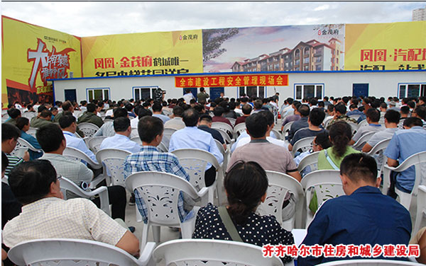 8月25日上午,齊市建設(shè)安全管理現(xiàn)場會(huì)在我公司施工總承包的鳳凰?金瑞府項(xiàng)目舉行。市住建局黨委書記、局長黃宇、市住建局黨委委員副局長王紳,全市各縣(市)區(qū)住建局主管副局長、安全站站長,在建工程建設(shè)、監(jiān)理、施工區(qū)企業(yè)負(fù)責(zé)人,企業(yè)安全負(fù)責(zé)人、總監(jiān)理工程師、安全監(jiān)理工程師、項(xiàng)目負(fù)責(zé)人、技術(shù)負(fù)責(zé)人500多人參加會(huì)議。