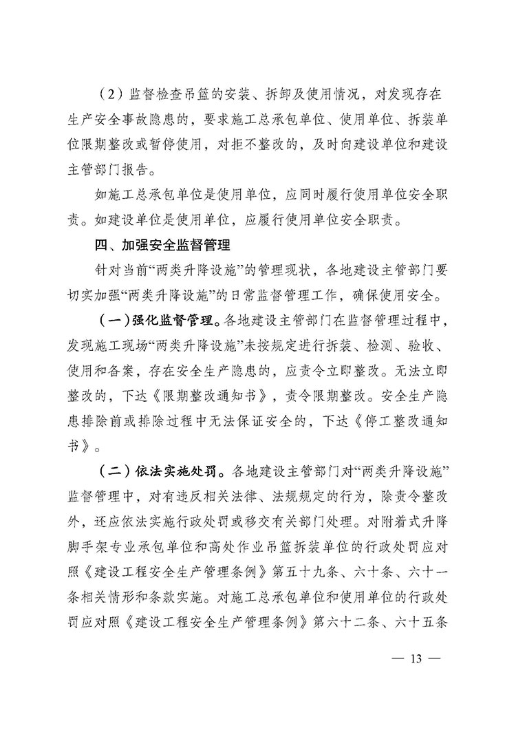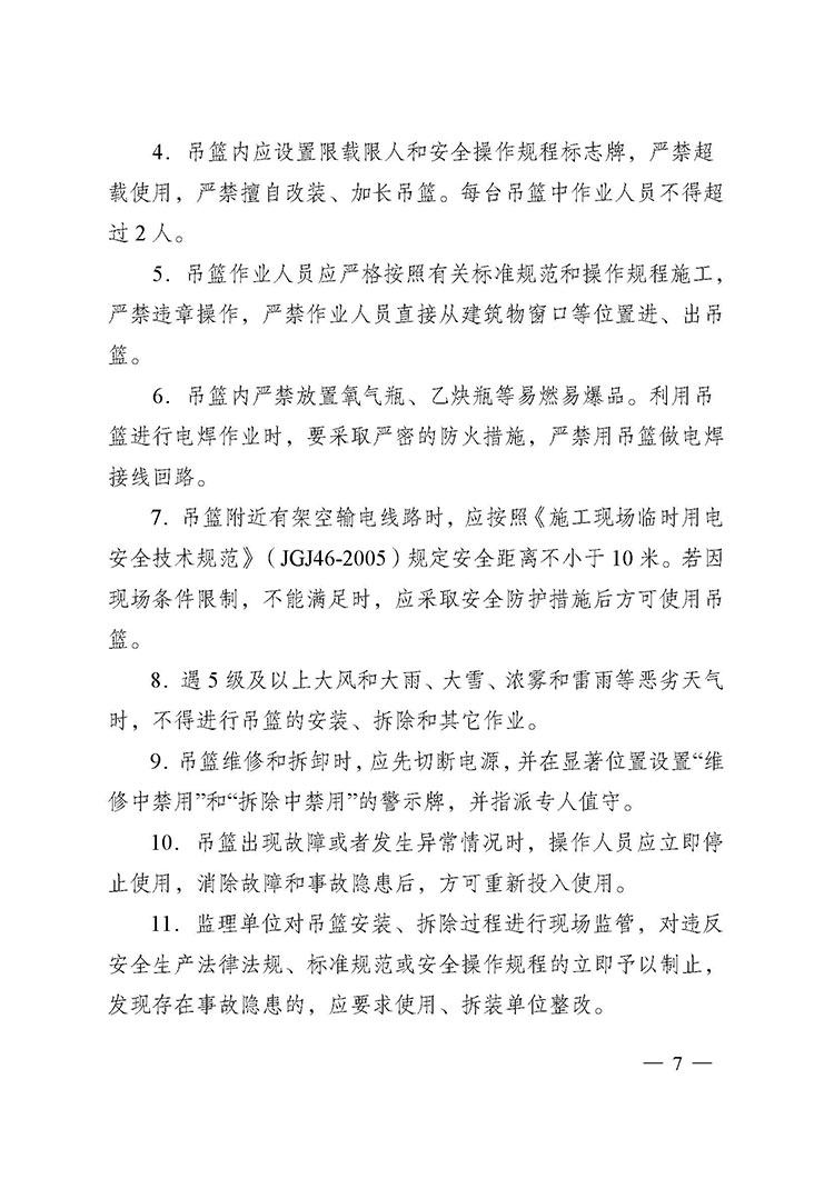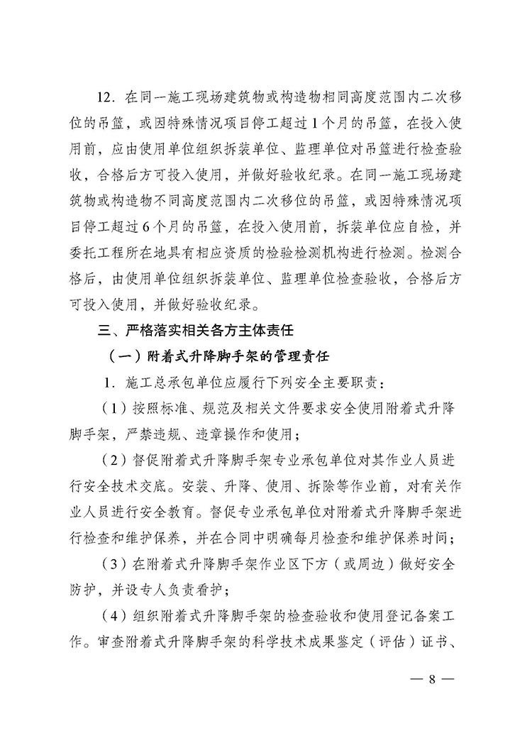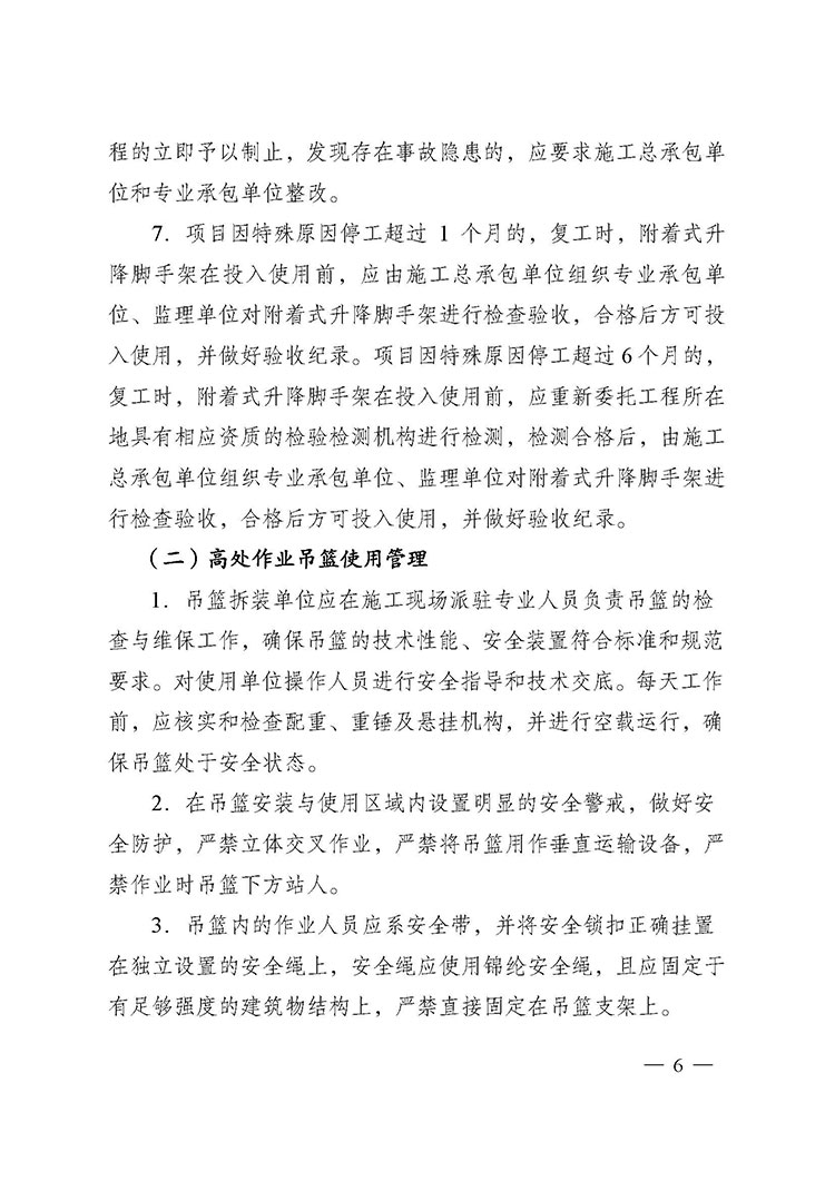 關(guān)于進(jìn)一步加強附著式升降腳手架和高處作業(yè)吊籃安全管理的通知